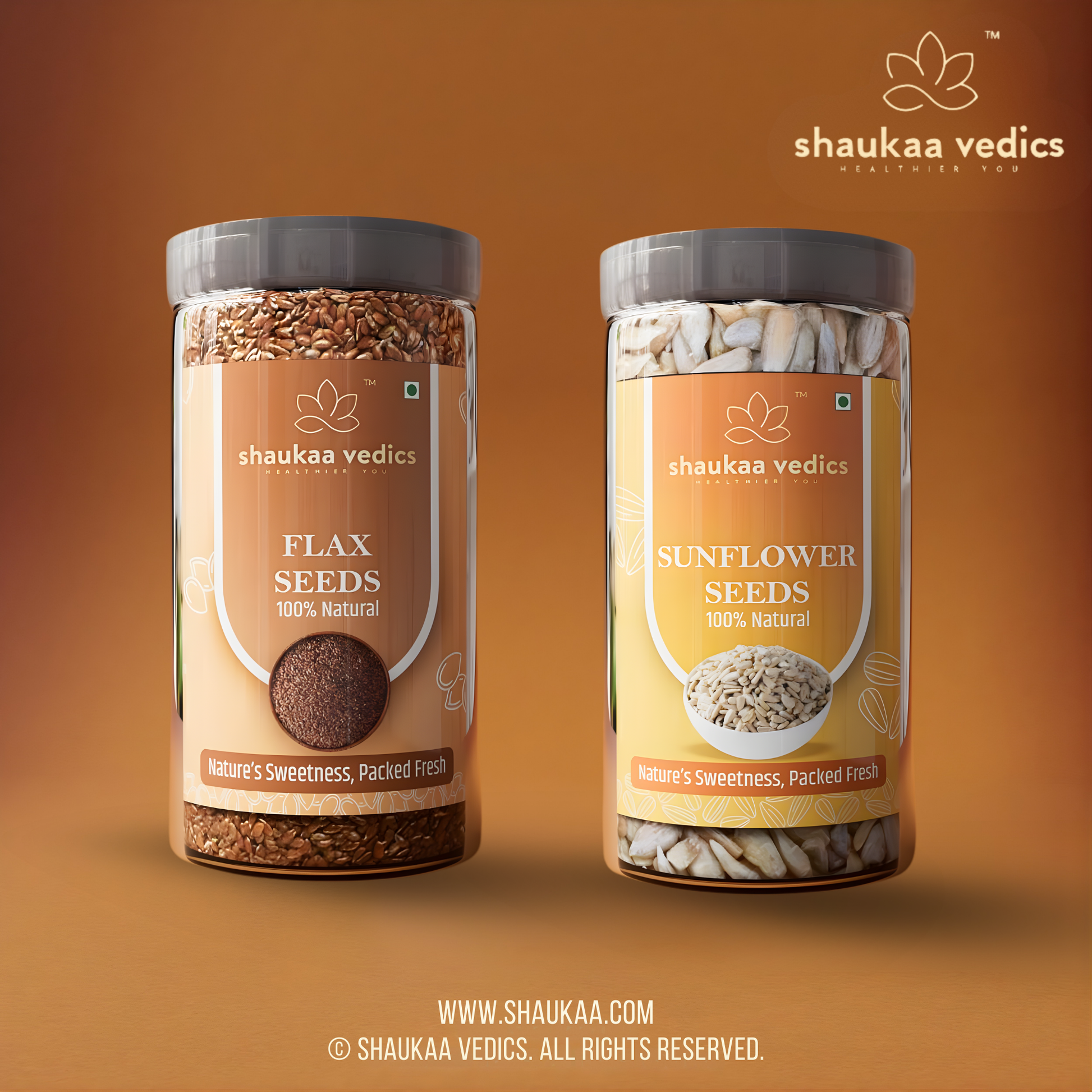 Support your daily nutrition with our Omega & Protein Seeds Combo, a healthy blend of sunflower seeds and flax seeds packed with protein, fiber, omega-3 fatty acids, and essential minerals.